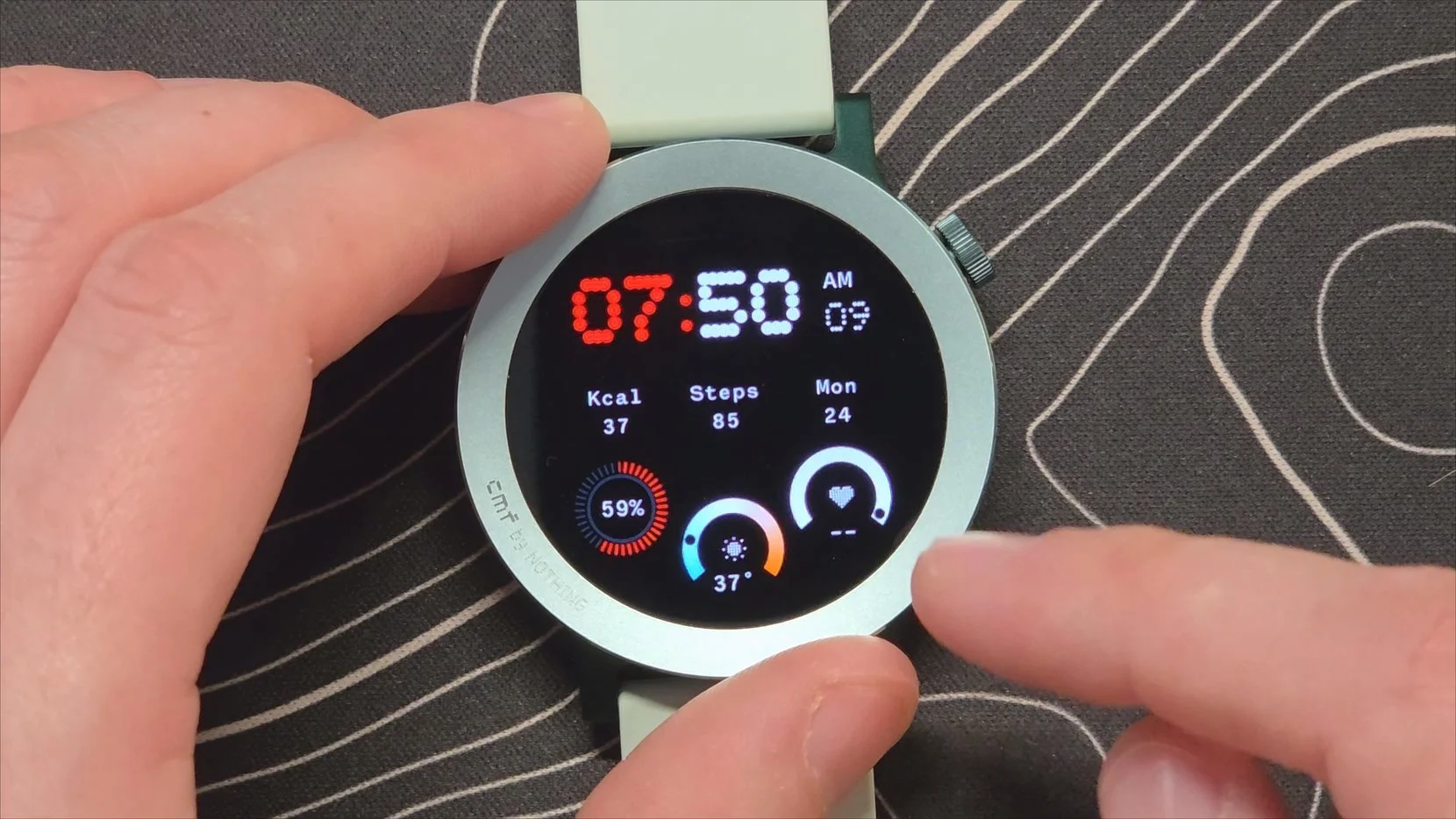 Out of the box, I was impressed. The watch looks nicer than I expected for the price. I was worried the "CMF by Nothing" text on the front would be distracting, but it is barely noticeable unless the light hits it just right.